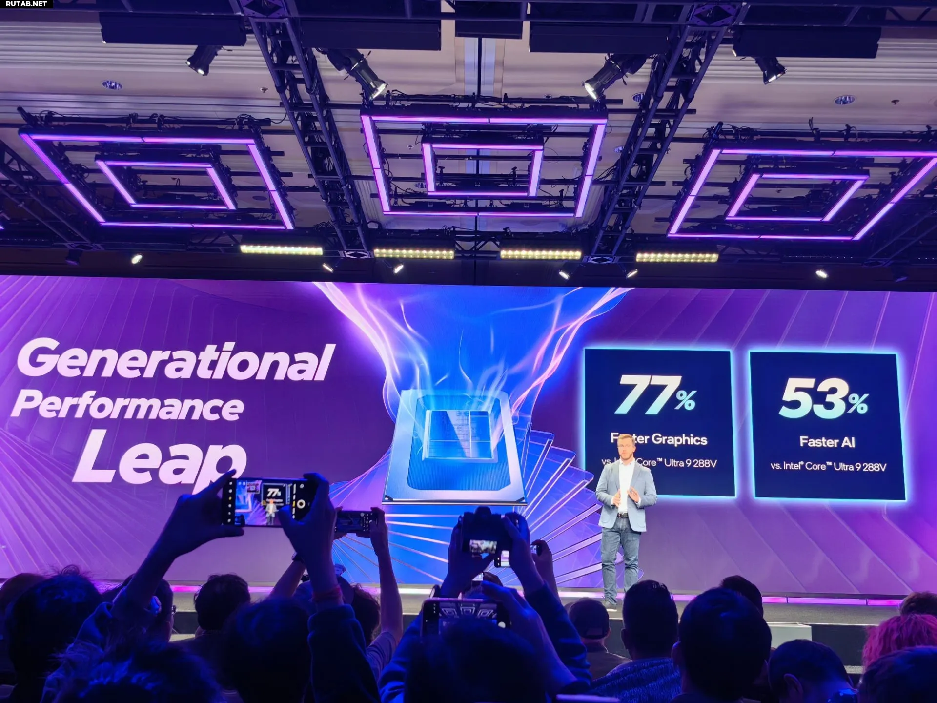 Графический процессор B390 оснащён 12 ядрами Xe3, поддерживает трассировку лучей и обладает вычислительной мощностью до 120 TOPS. По заявлению Intel, его графическая производительность на 77%, а производительность в задачах ИИ на 53% выше, чем у Core Ultra 9 288V.