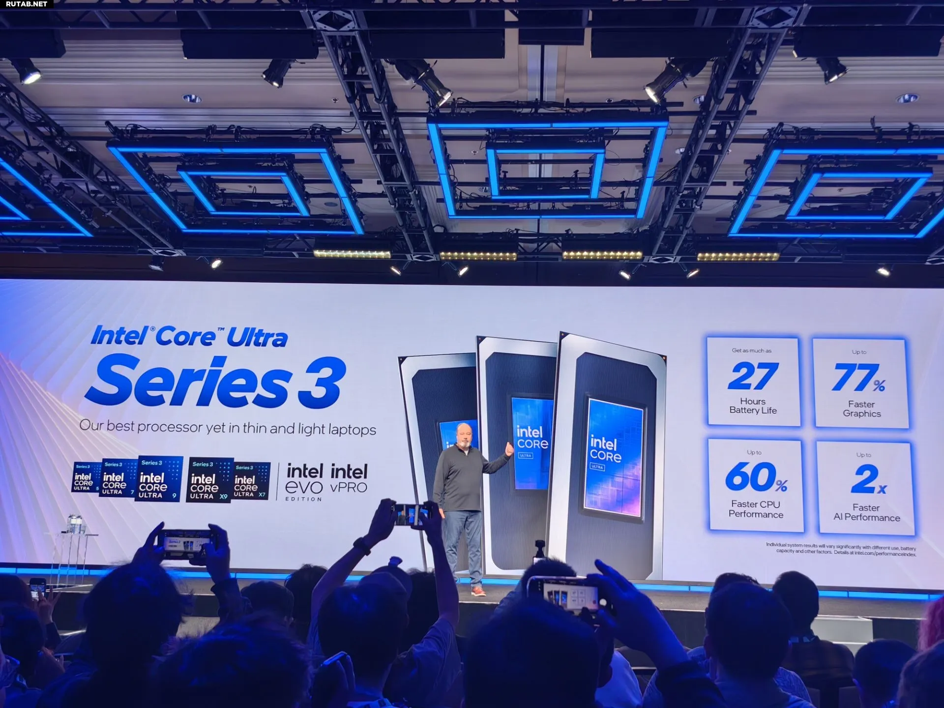 Что касается топовой модели X9 388H, Intel утверждает, что по сравнению с Lunar Lake её многопоточная производительность выросла на 60%, игровая производительность — на 77%, а производительность в задачах ИИ увеличилась в два раза. Время автономной работы ноутбука на такой платформе может достигать 27 часов.
