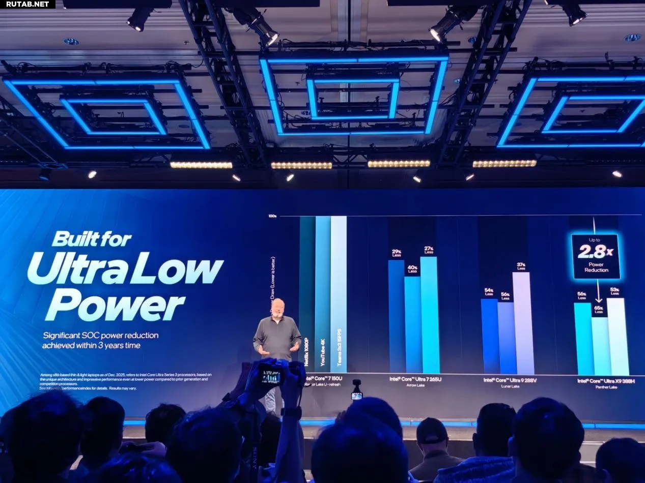 Intel представила процессоры Core Ultra 300 на 18A: до 27 часов автономности и рост игровой производительности на 77%