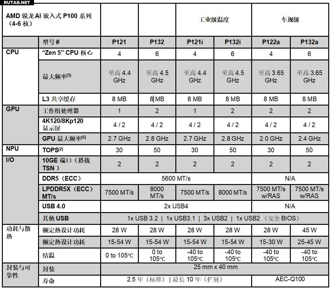 Новые процессоры объединяют в себе высокопроизводительные ядра Zen 5, графику AMD RDNA 3.5 и нейропроцессор AMD XDNA 2. Модели P100 оснащены 4-6 ядрами и оптимизированы для цифровых кокпитов и человеко-машинных интерфейсов, обеспечивая работу графики на информационно-развлекательных дисплеях в реальном времени, AI-взаимодействие и многодоменные возможности.