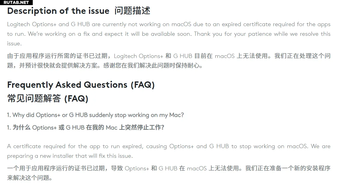 Поскольку сертификат, требуемый для работы приложений, просрочен, Options+ и G Hub на macOS перестали функционировать и не могут выполнять онлайн-обновления. Для решения проблемы пользователям придётся скачать новый установщик.