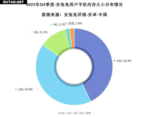 Аналогично ускоряется и переход на большие объемы оперативной памяти: доля смартфонов с 16 ГБ ОЗУ составляет 42,9%, с 12 ГБ — 41,6%. Вместе они занимают более 84% рынка, став предпочтительным выбором. Доля устройств с 8 ГБ и 6 ГБ ОЗУ — всего 13,6%, и они постепенно уходят с массового рынка.