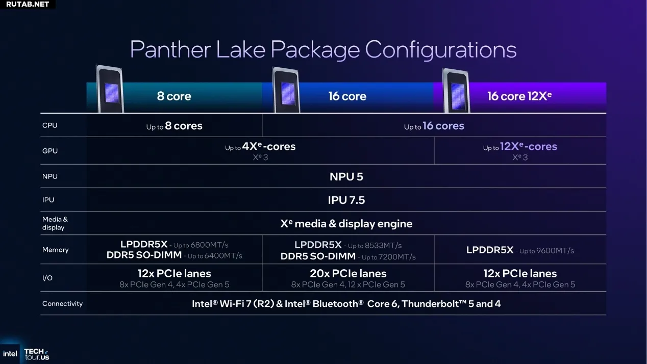 Новые технологии архитектуры Xe3, безусловно, многообещающи, но это не делает Intel «добрым самаритянином» в области встроенной графики. Дело в том, что Panther Lake использует резкое разделение: мощные 12 исполнительных блоков (Xe) есть только в топовых моделях, а в массовых моделях их количество урезано до 4, без каких-либо промежуточных вариантов с 8 блоками. Теоретически производительность таких решений составит лишь треть от топовых (а с учётом возможного урезания поддержки памяти, на практике может быть и того хуже). В таком виде они вряд ли будут сильно отличаться от 890M от AMD, а возможно, и вовсе окажутся слабее (тут всё решит эффективность технологий масштабирования XeSS и FSR).