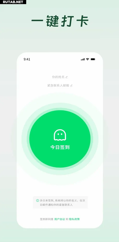Функционал приложения довольно прост. Пользователю необходимо указать своё имя и адрес электронной почты контактного лица на случай чрезвычайной ситуации. Если пользователь не регистрируется в приложении в течение двух дней подряд, система автоматически отправит уведомление указанному контакту.