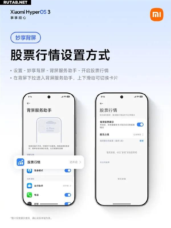 Настройка функции осуществляется следующим образом: зайдите в Настройки > Умный тыльный экран > Помощник служб тыльного экрана, включите опцию «Биржевые котировки». Затем на тыльном экране потяните вниз, чтобы войти в Помощник служб, и, переключая карточки смахиванием вверх-вниз, добавьте нужные акции в помощник.
