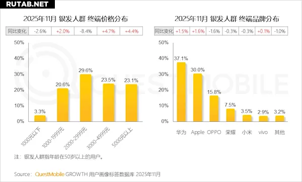Согласно последним данным QuestMobile за ноябрь 2025 года, среди китайцев в возрасте 50 лет и старше почти половина (46,6%) используют смартфоны стоимостью более 3000 юаней.