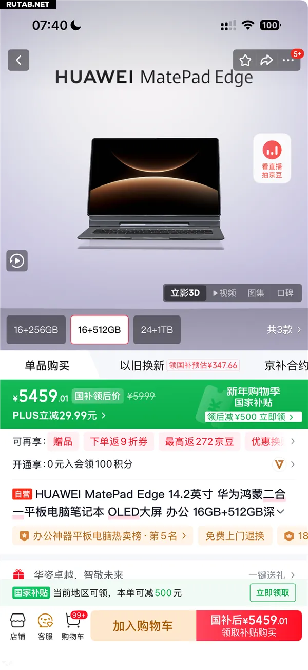Компания Huawei официально снизила стоимость планшета-трансформера MatePad Edge. Скидка распространяется на версии 16 ГБ + 256 ГБ и 16 ГБ + 512 ГБ: цена на первую модель уменьшилась на 200 юаней, а на вторую — на 500 юаней.
