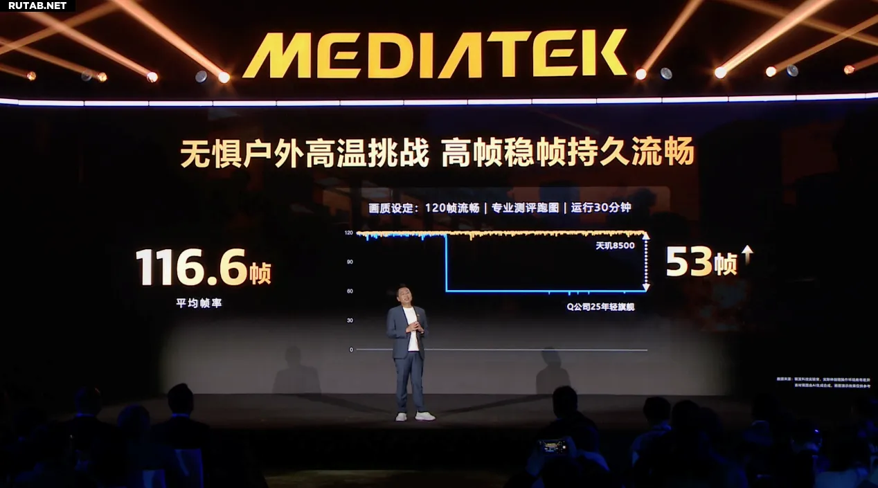 Для решения проблемы перегрева в играх, особенно в жарких условиях, Dimensity 8500 был всесторонне оптимизирован: в MOBA-играх потребление энергии может быть снижено на 37%, и даже при стабильных 120 кадрах в секунду игра может работать 30 минут и дольше.