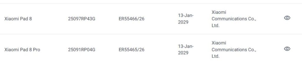 Устройства с модельными номерами 25097RP43G и 25091RP04G были сертифицированы как Xiaomi Pad 8 и Xiaomi Pad 8 Pro соответственно. Ранее эти же модели были одобрены в Сингапуре и получили сертификат FCC.