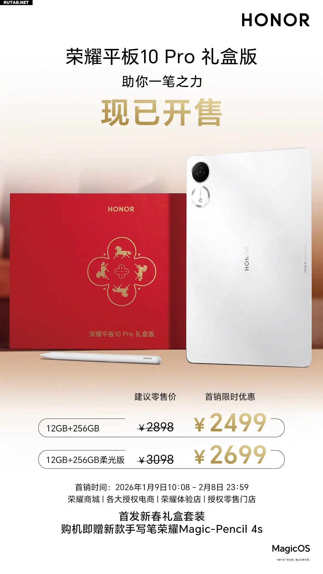 Компания Honor анонсировала подарочный набор Honor Tablet 10 Pro, который включает в себя сам планшет и новое перо Magic-Pencil 4s. Специальная стартовая цена набора составляет от 2499 юаней.