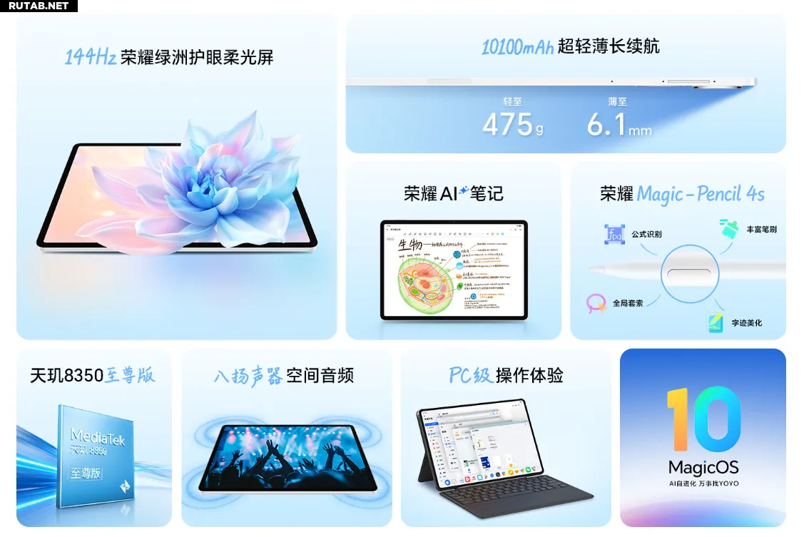 В основе планшета лежит процессор MediaTek Dimensity 8350 Ultimate, созданный по 4-нм техпроцессу. По сравнению с предыдущим поколением, производительность CPU выросла на 20%, GPU — на 60%, а совокупная производительность ИИ увеличилась в 3.3 раза.