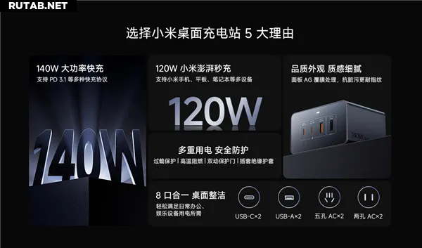 Xiaomi выпустила первую настольную зарядную станцию мощностью 140 Вт с 8 портами