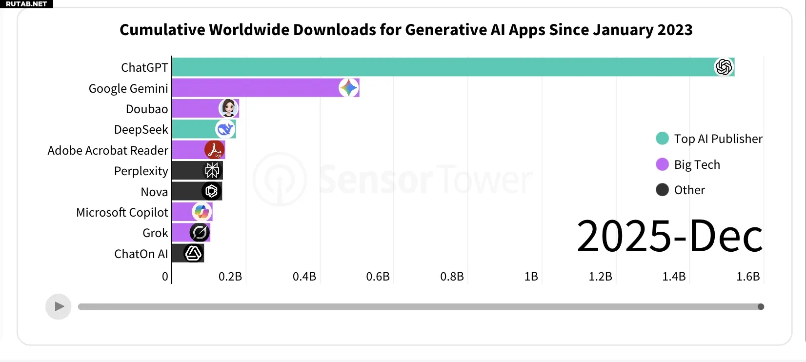Генеративный ИИ, определяющий тренд последнего года, стал локомотивом роста доходов: выручка от внутриигровых покупок в этой категории утроилась и превысила 5 миллиардов долларов (~400 млрд рублей) в 2025 году. Количество загрузок ИИ-приложений также выросло, удвоившись в годовом исчислении и достигнув 3,8 миллиарда.