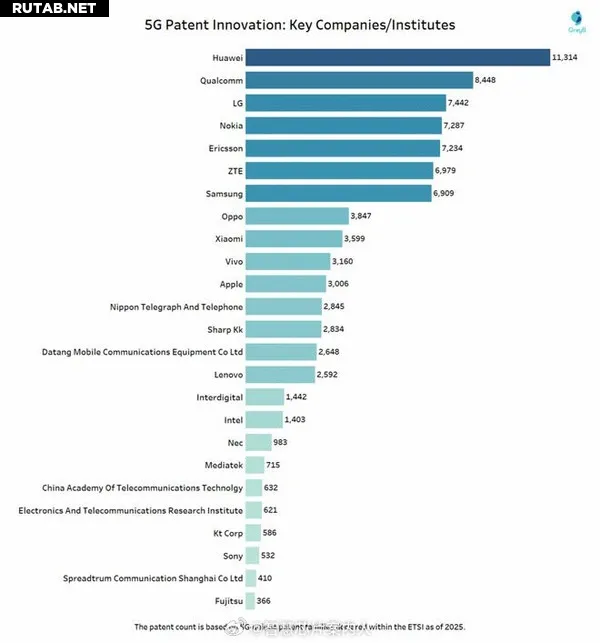 Китайские технологические гиганты демонстрируют подавляющее преимущество в области патентов, необходимых для стандарта 5G. Согласно свежим данным Европейского института телекоммуникационных стандартов (ETSI), в десятке лидеров по количеству таких патентов половину мест занимают компании из КНР.
