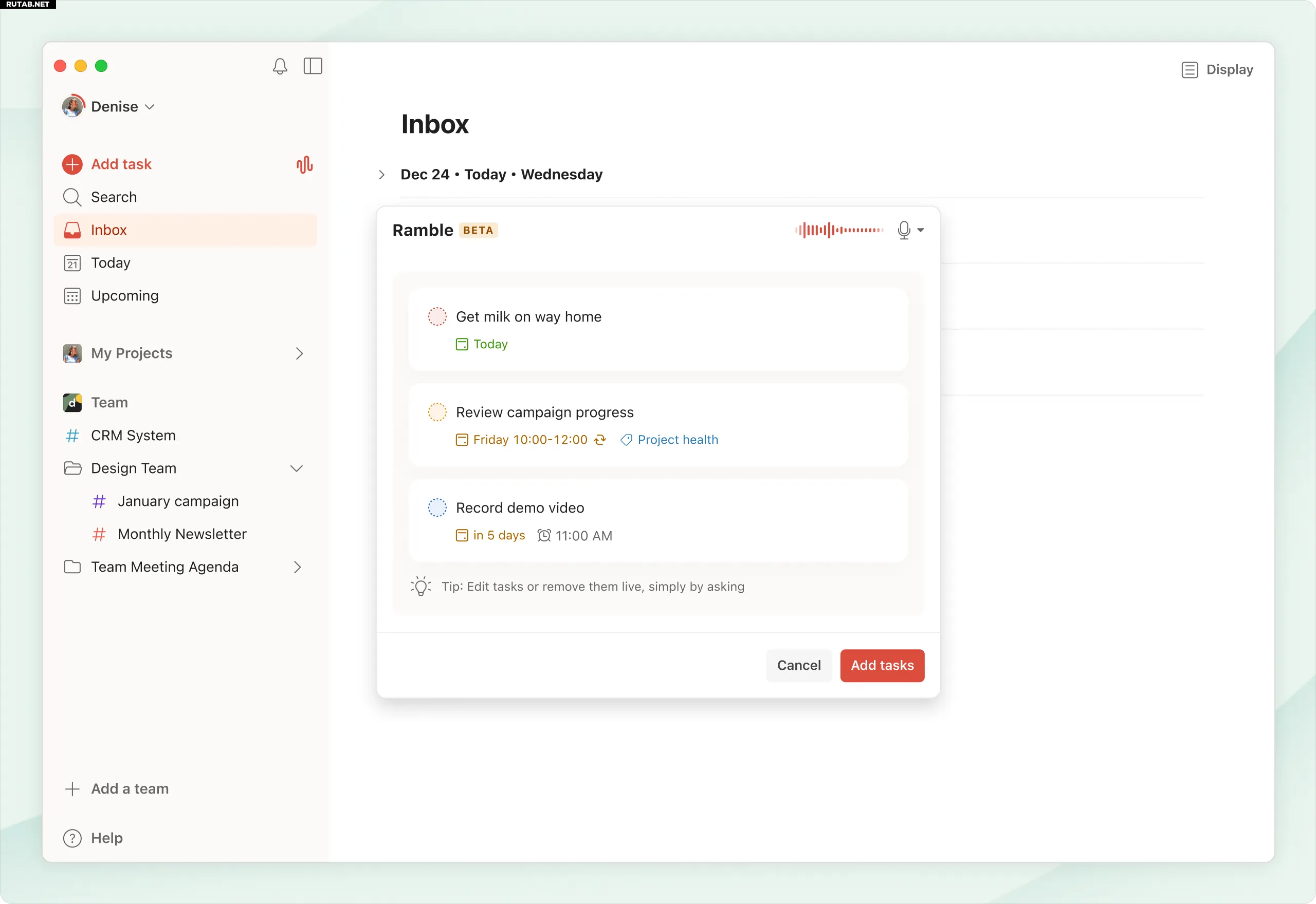 Todoist представила голосовую функцию Ramble для добавления задач в список дел