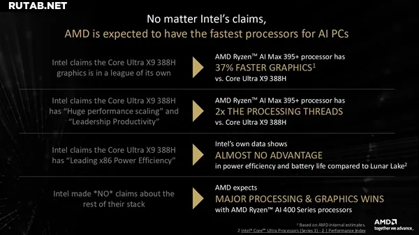 Теперь AMD опубликовала краткую презентацию, состоящую всего из двух слайдов, но наполненную жёсткими заявлениями.