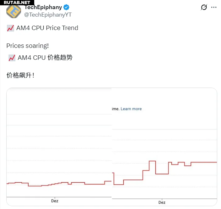 Аналогичная ситуация наблюдается с Ryzen 7 5800XT. В настоящее время этот процессор продаётся на Amazon за 219 долларов (~17520 рублей), тогда как в мае 2025 года его цена опускалась до 125 долларов (~10000 рублей). Текущая цена более чем на 75% выше минимальной.