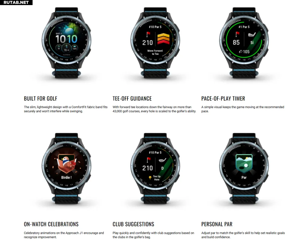 Approach J1 подходит и для других активностей. Он отслеживает ходьбу, бег и езду на велосипеде с помощью GPS для измерения дистанции. Стандартные функции умных часов включают счетчик шагов, будильник, таймер и секундомер.