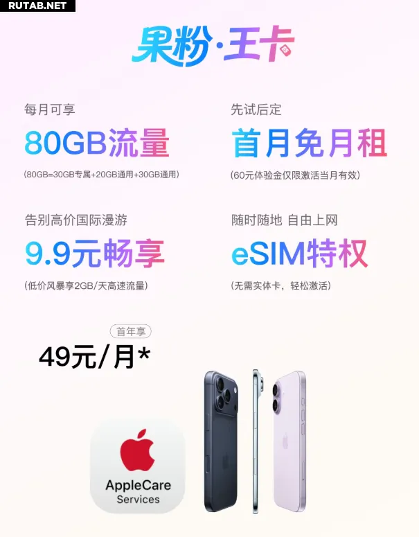Китайский оператор China Unicom запустил тариф «Apple Fan King Card» с 80 ГБ трафика и подпиской на AppleCare