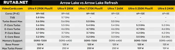 По данным источников, серия Core Ultra 200K Plus будет включать модели 9 290K Plus, 7 270K Plus и 5 250K Plus. Они получат больше ядер, более высокие частоты и поддержку более быстрой памяти, при этом тепловыделение (TDP) останется на прежнем уровне.