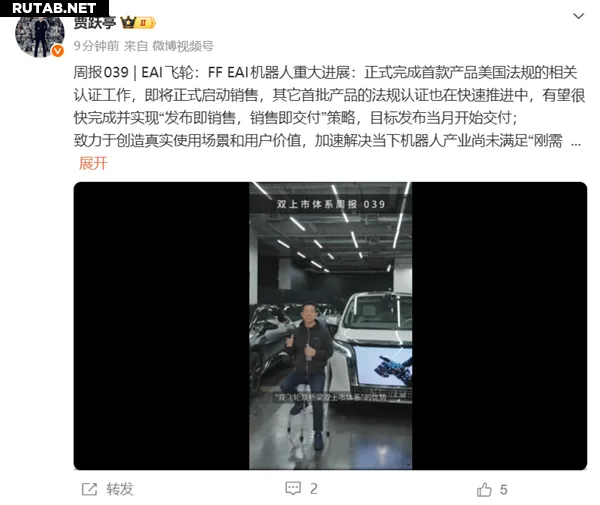 Основатель и партнёр компании FF EAI (подразделение Faraday Future) Цзя Юэтин объявил о значительном прогрессе в разработке человекоподобного робота FF EAI.