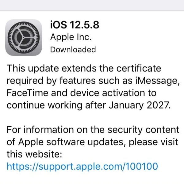 Согласно списку изменений Apple, iOS 12.5.8 в основном обновляет внутренние сертификаты безопасности. Эти сертификаты необходимы для базовых функций системы, включая активацию устройства и основные сервисы Apple, такие как iMessage и FaceTime.