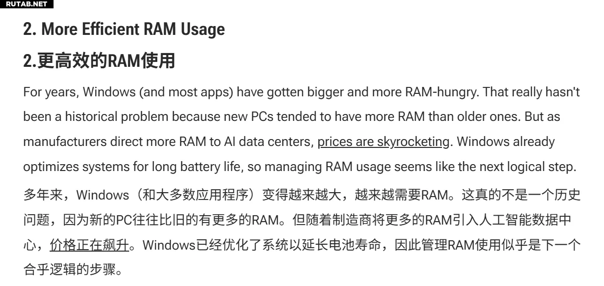 Авторы статьи указывают, что со временем Windows и приложения становятся всё более ресурсоёмкими. Раньше это компенсировалось увеличением объёма памяти в новых ПК, но в условиях высоких цен Microsoft необходимо пересмотреть подход к управлению памятью в своей ОС.