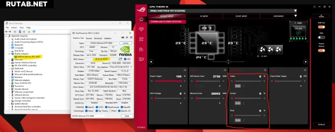 Для белой версии ROG Astral RTX 5090 при использовании штатного кулера серьёзных проблем не возникло, а вот чёрная версия после прошивки потребовала дополнительных настроек.