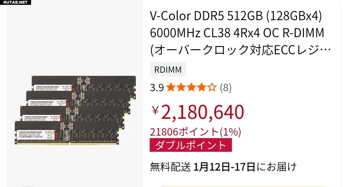 Особенно впечатляют цены на серверную память. На японском рынке комплект оперативной памяти DDR5 объемом 512 ГБ (4 модуля по 128 ГБ) оценивается в 2,18 миллиона иен, что эквивалентно примерно 98 000 юаней. Таким образом, один модуль на 128 ГБ обходится примерно в 25 000 юаней, а стоимость эквивалента в 32 ГБ достигает 6000 юаней, что почти вдвое дороже потребительских аналогов.