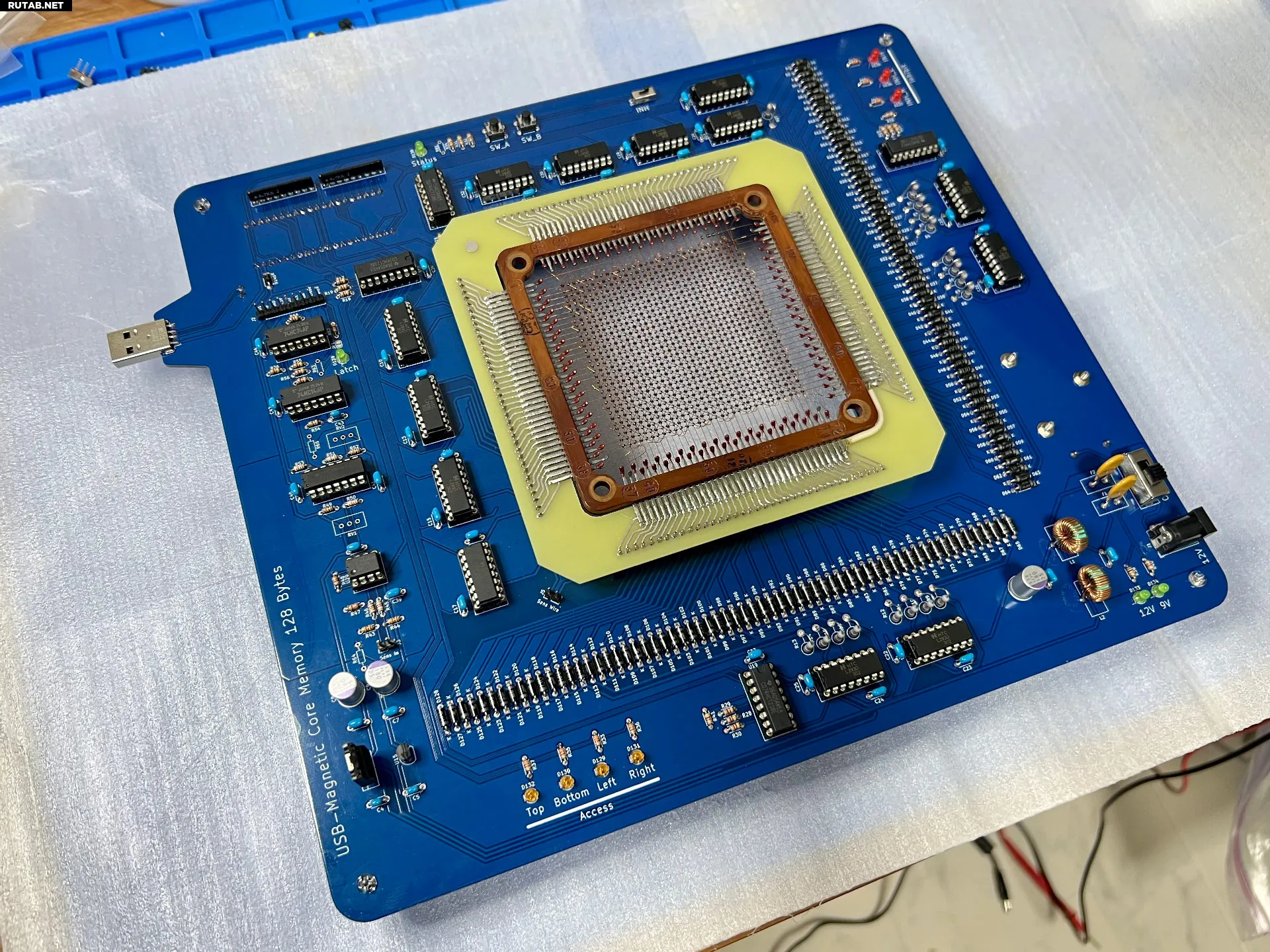 Японский технический энтузиаст смешал эту любопытно старую технологию памяти с современными микросхемами и интерфейсами, чтобы создать эту странную USB-флешку. Вокруг центральной энергонезависимой матрицы сердечников расположены современные компоненты: драйверы, усилители считывания, светодиоды, а функциональность USB обеспечивает Raspberry Pi Pico. Этот микроконтроллер также обрабатывает цикл перезаписи.