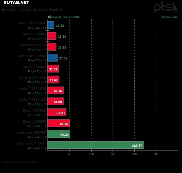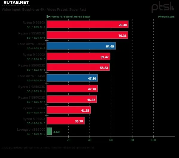 Процессор Loongson 3B6000: тесты в Linux показывают конкуренцию с Ryzen 5 9600X в трассировке лучей