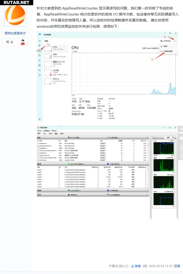 Пользователи игрового акселератора Thunder (雷神加速器) сообщили о подозрительно высокой активности чтения и записи на жёсткий диск при работе программы.