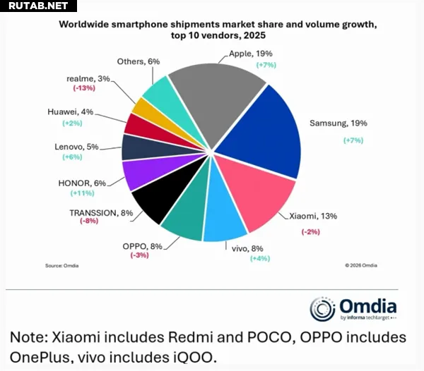 Согласно данным аналитической компании Omdia, глобальные поставки смартфонов Honor в 2025 году выросли на 11%, что сделало бренд самым быстрорастущим среди десяти крупнейших производителей.