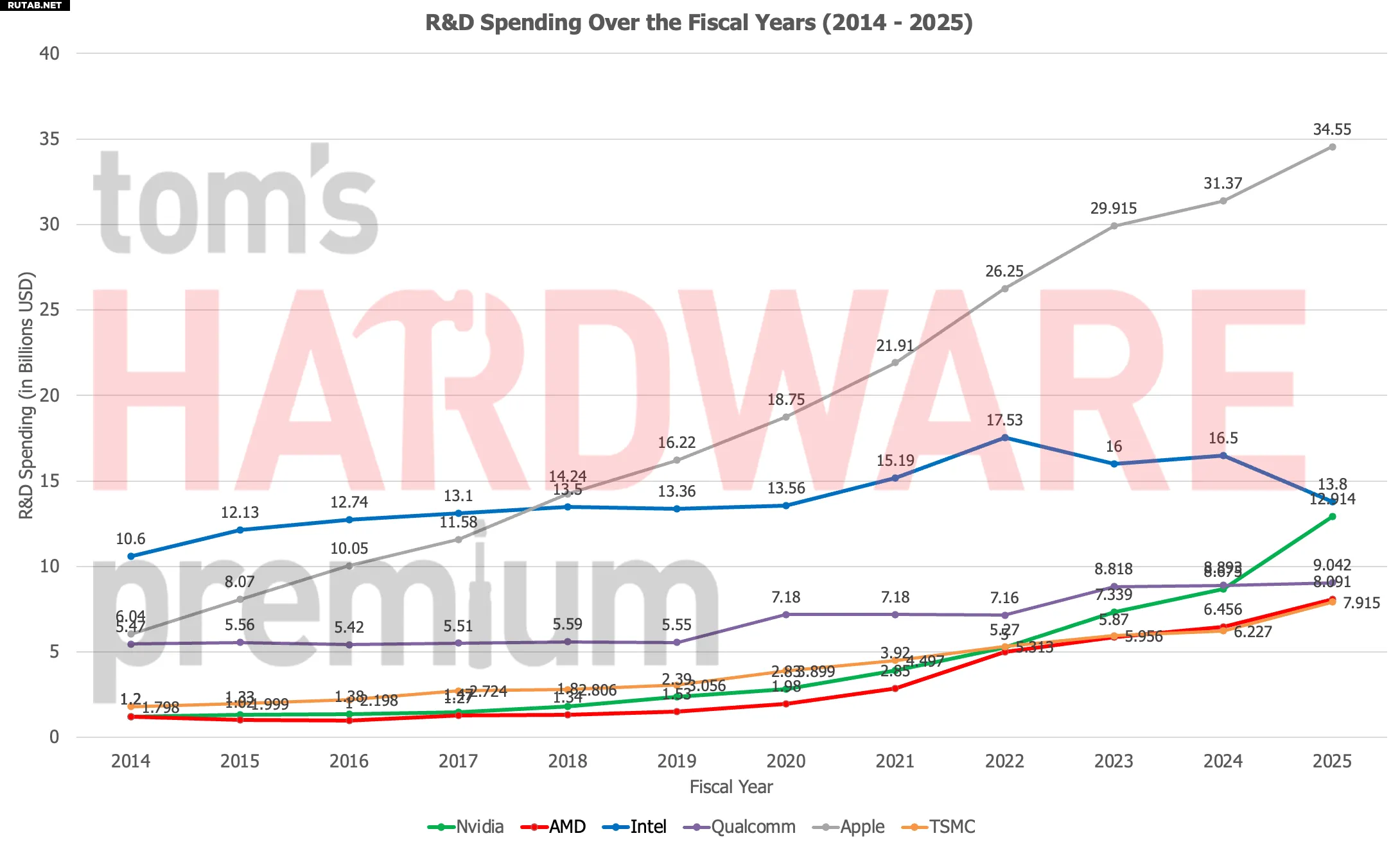 Intel по-прежнему тратит на R&D больше, чем AMD и TSMC