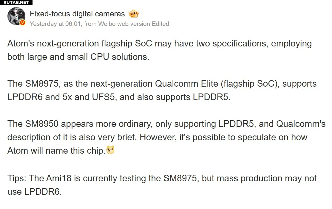 В сообщениях также появляется любопытная информация, касающаяся базового варианта Snapdragon 8 Elite Gen 6. Согласно утечке, он должен поддерживать исключительно старый стандарт LPDDR5. Однако, учитывая спецификацию текущих поколений чипов, это сообщение может быть следствием ошибки в технической документации или касаться специфических тестовых версий, поскольку такое технологическое ограничение было бы нетипичным шагом со стороны Qualcomm.