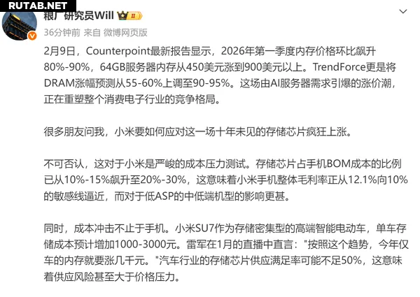 Столкнувшись с этим ростом, блогер «Исследователь зернового завода» (粮厂研究员) отметил, что для Xiaomi это серьезное испытание на прочность из-за давления на себестоимость.