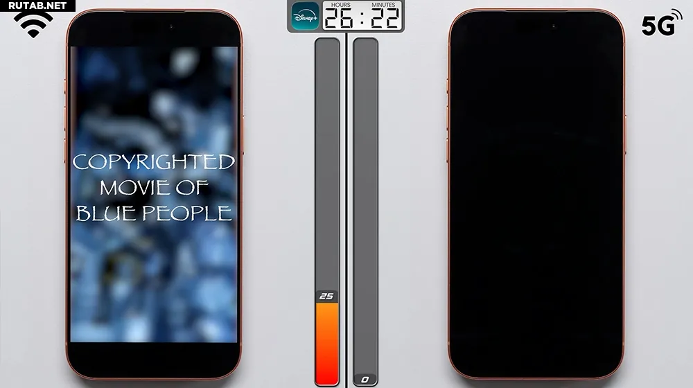 Решающим стал финальный тест — потоковое воспроизведение контента в Disney+. Непрерывная загрузка видео высокого разрешения создала двойную нагрузку на сеть и батарею. Смартфон на 5G продержался всего 22 минуты и отключился, в то время как устройство на Wi-Fi всё ещё имело 25% заряда.