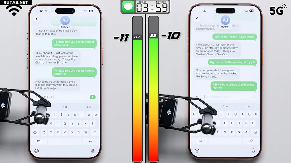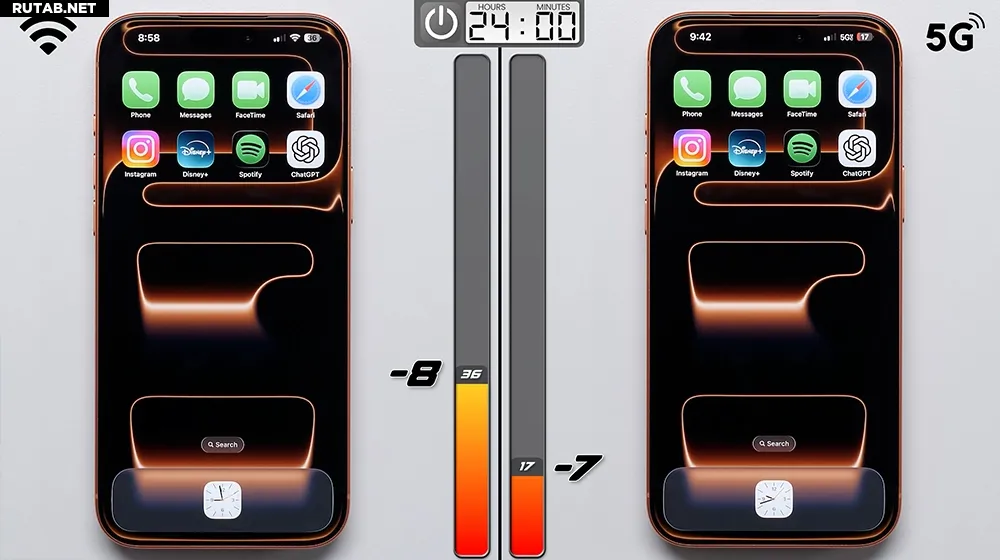 Для чистоты эксперимента использовались два абсолютно новых iPhone 17 Pro Max. Один работал исключительно через Wi-Fi, второй — полностью на сети 5G. Перед началом теста на обоих устройствах была установлена одинаковая яркость экрана (200 нит), отключены динамики, выполнены сброс системы, установка только тестовых приложений и создание новых учётных записей. Это позволило исключить влияние фоновых процессов и свести разницу в автономности исключительно к типу используемого сетевого подключения.