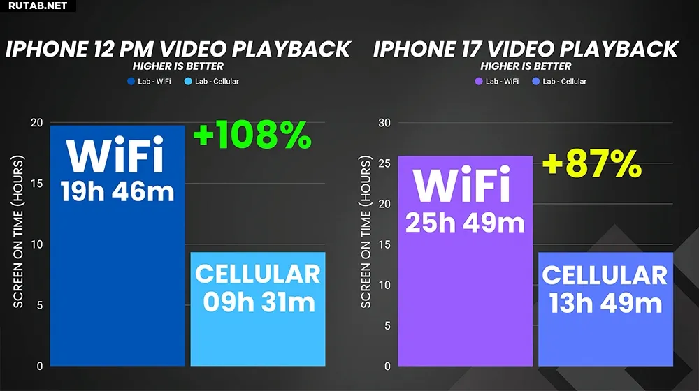 Кроме того, важна и модель устройства. Так, для iPhone 17 с более современным сетевым модемом переход на Wi-Fi даёт прирост автономности около 87%. А вот для более старого iPhone 12 Pro Max в тех же условиях этот показатель достигает 108%.