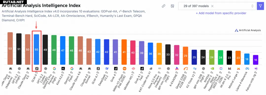 В авторитетном глобальном рейтинге Artificial Analysis модель GLM-5 занимает 4-е место в мире и 1-е место среди открытых (open-source) моделей.