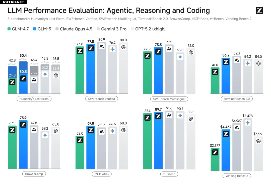 Во внутреннем наборе оценок Claude Code, GLM-5 значительно превосходит предыдущее поколение GLM-4.7 (в среднем на более чем 20%) в задачах фронтенд-, бэкенд-разработки и длительных миссиях. Модель способна с минимальным вмешательством человека самостоятельно выполнять длительное агентское планирование и исполнение, рефакторинг бэкенда и глубокую отладку, а опыт её использования приближается к Opus 4.5.