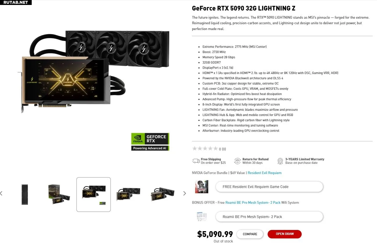 Видеокарта MSI RTX 5090 Lightning Z продаётся в Индии по цене, в 4-5 раз превышающей рекомендованную