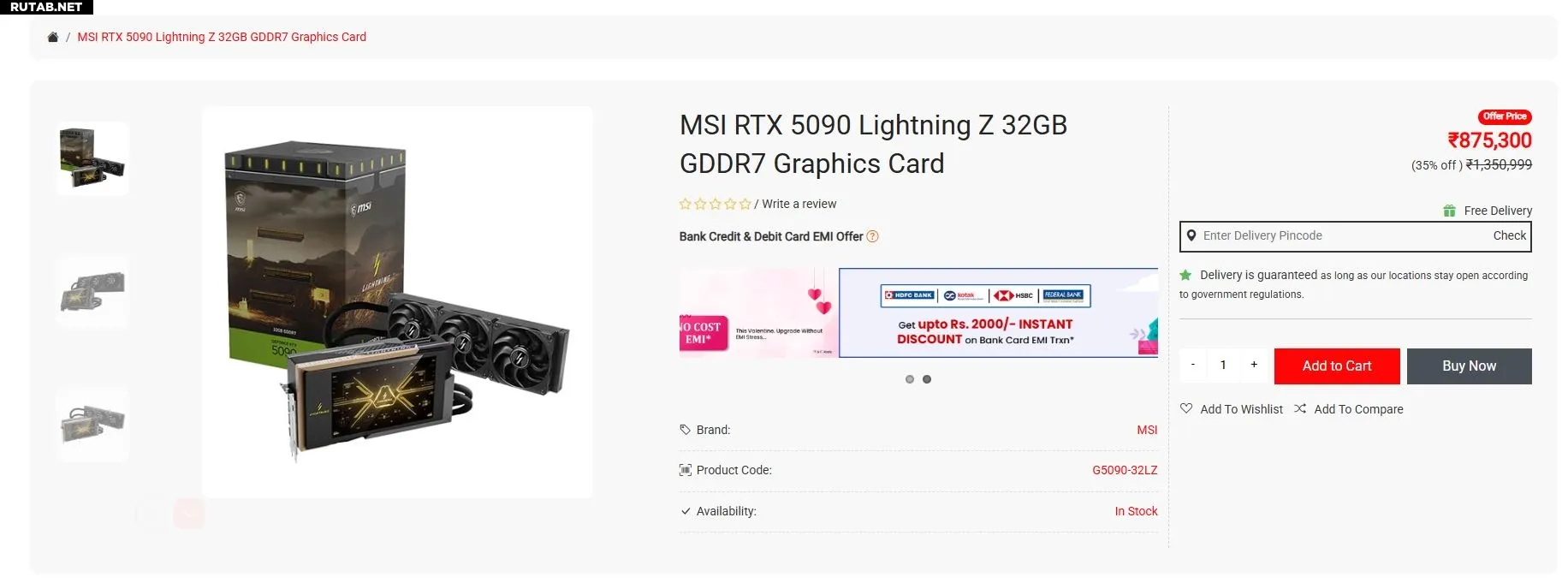 Примечательно, что хотя индийские продавцы заявляют, что карту можно купить без участия в лотерее, их цены не только многократно превышают рекомендованную MSI стоимость, но и в 4-5 раз выше рекомендованной розничной цены (MSRP) стандартной RTX 5090.