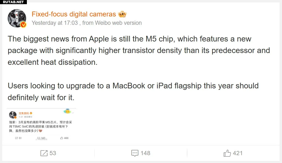 Слухи о следующем поколении чипов Apple Silicon набирают обороты. Последние сообщения из китайского сервиса Weibo предполагают, что чипы M5 Pro и M5 Max принесут фундаментальные изменения в архитектуре, сделав ставку на продвинутый теплоотвод и увеличенную плотность транзисторов. Если эта информация подтвердится, Apple может вновь изменить правила игры в энергоэффективности.