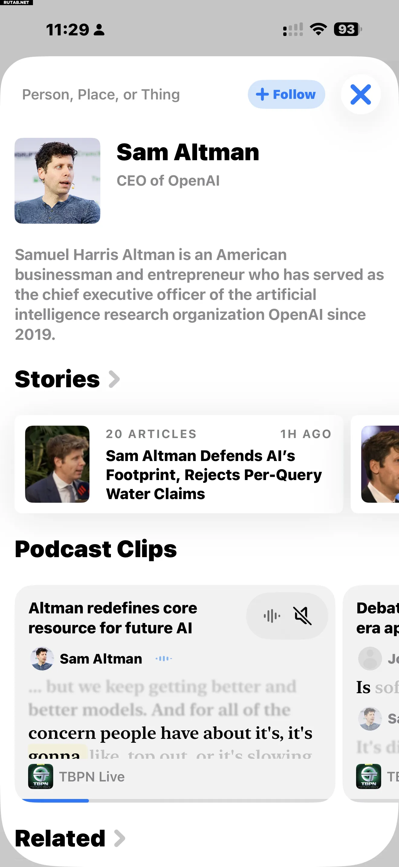 Функция Podcast Clips привязана не только к новостям. Пользователи могут перейти на страницу известной личности, например Сэма Альтмана, и увидеть все его появления в подкастах в виде ленты.