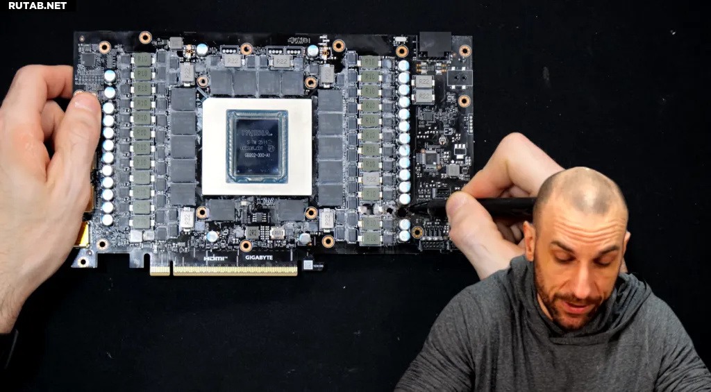 Это была не единственная модификация. Он также выполнил модификацию шунтирующих резисторов — известный (и рискованный) тюнинг, который фактически обходит встроенные ограничения по мощности от Nvidia. Цель была проста: позволить GPU потреблять гораздо больше энергии, чем разрешено заводскими настройками.