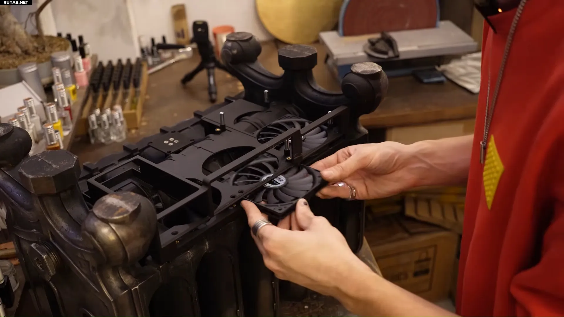 Первым практическим шагом стало 3D-сканирование нижней части радиатора для создания точной модели. На её основе Феликс спроектировал высокоточную систему креплений для блока питания, материнской платы, видеокарты и других компонентов, напечатанную на 3D-принтере. Этот двухсоставной пластиковый шасси был закреплён на центральной несущей части радиатора.
