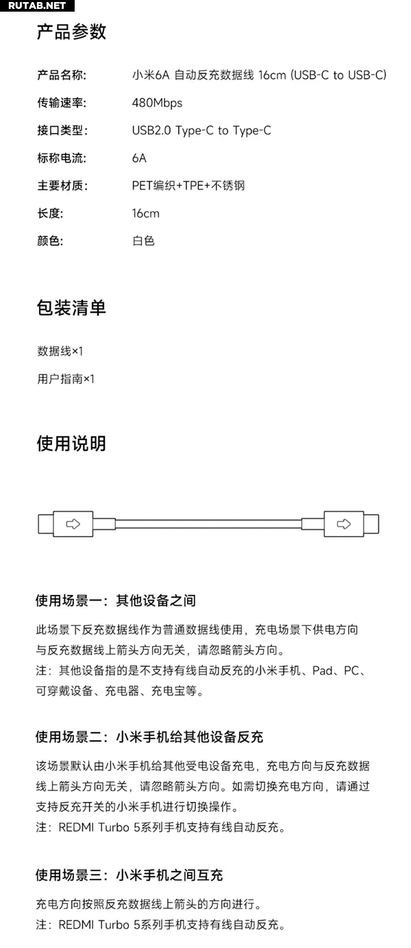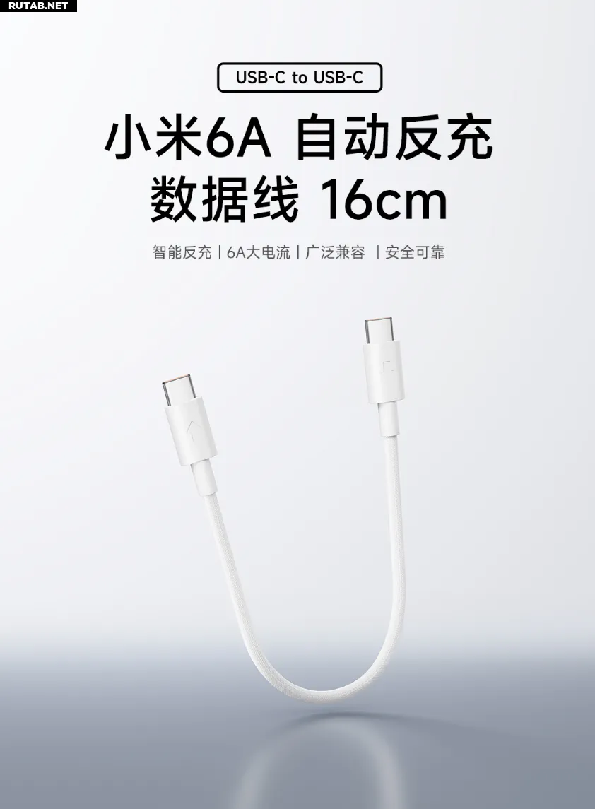 Компания Xiaomi официально представила кабель для передачи данных Type-C с автоматической обратной зарядкой 6A. Это портативный короткий кабель длиной 16 см, обеспечивающий быструю зарядку током 6A и интеллектуальную обратную зарядку. Его цена составляет всего 9,9 юаня.
