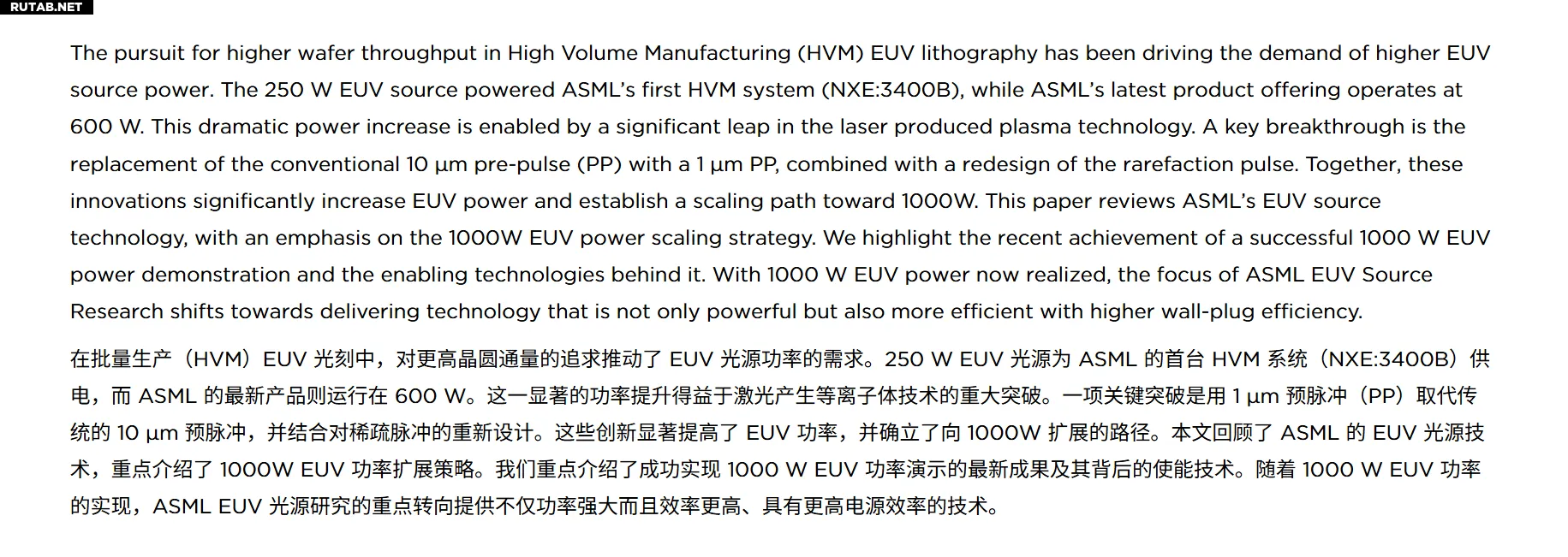 ASML удвоила мощность EUV-источника до 1000 Вт благодаря китайским учёным