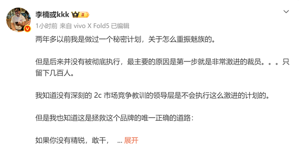 По словам Ли Наня, более двух лет назад он разработал секретный план по восстановлению Meizu. Однако он не был полностью реализован, главным образом потому, что первым шагом были очень радикальные сокращения... с оставлением всего нескольких сотен сотрудников.